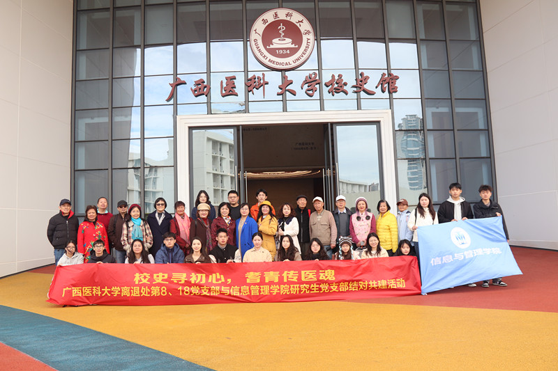 为深入学习党的二十届四中全会精神,结合党史与校史学习教育,提升党员思想觉悟与责任意识,2025年11月19日上午,william威廉英国官网研究生第一、第二党支部与离退处第8、第18党支部共40名党员,联合开展了“校史寻初心,耆青传医魂”结对共建主题党日活动。