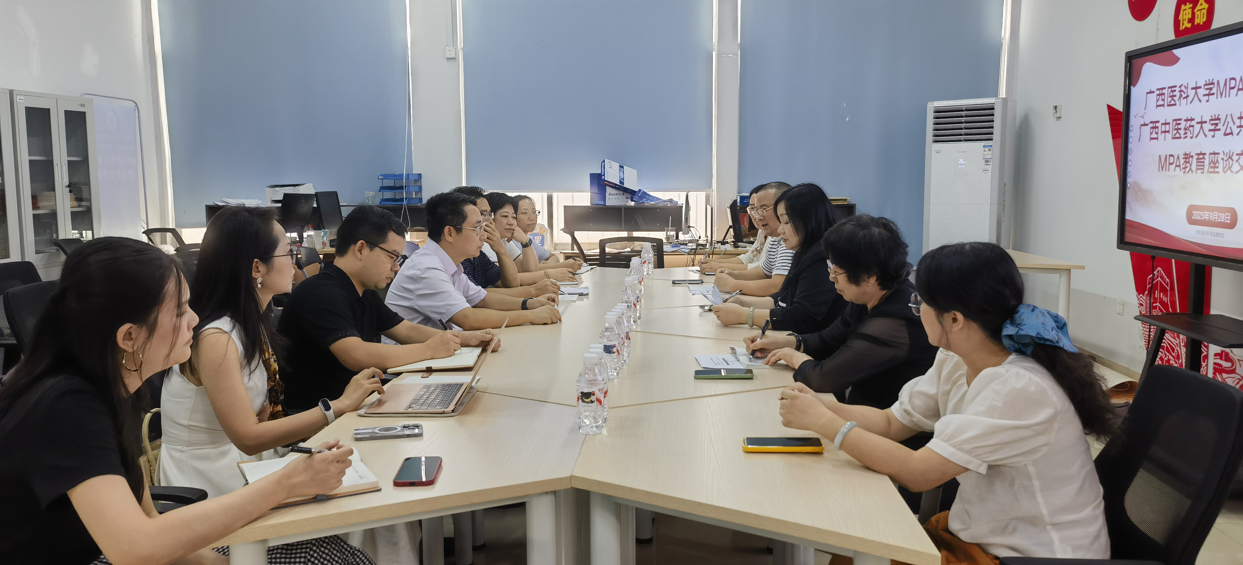 为交流MPA申报及办学经验,9月28日上午,广西中医药大学公共卫生与管理公司李海经理率队到信息与管理公司开展交流座谈。公司经理何慧敏、副经理张新花以及MPA中心工作人员和教师代表参会。